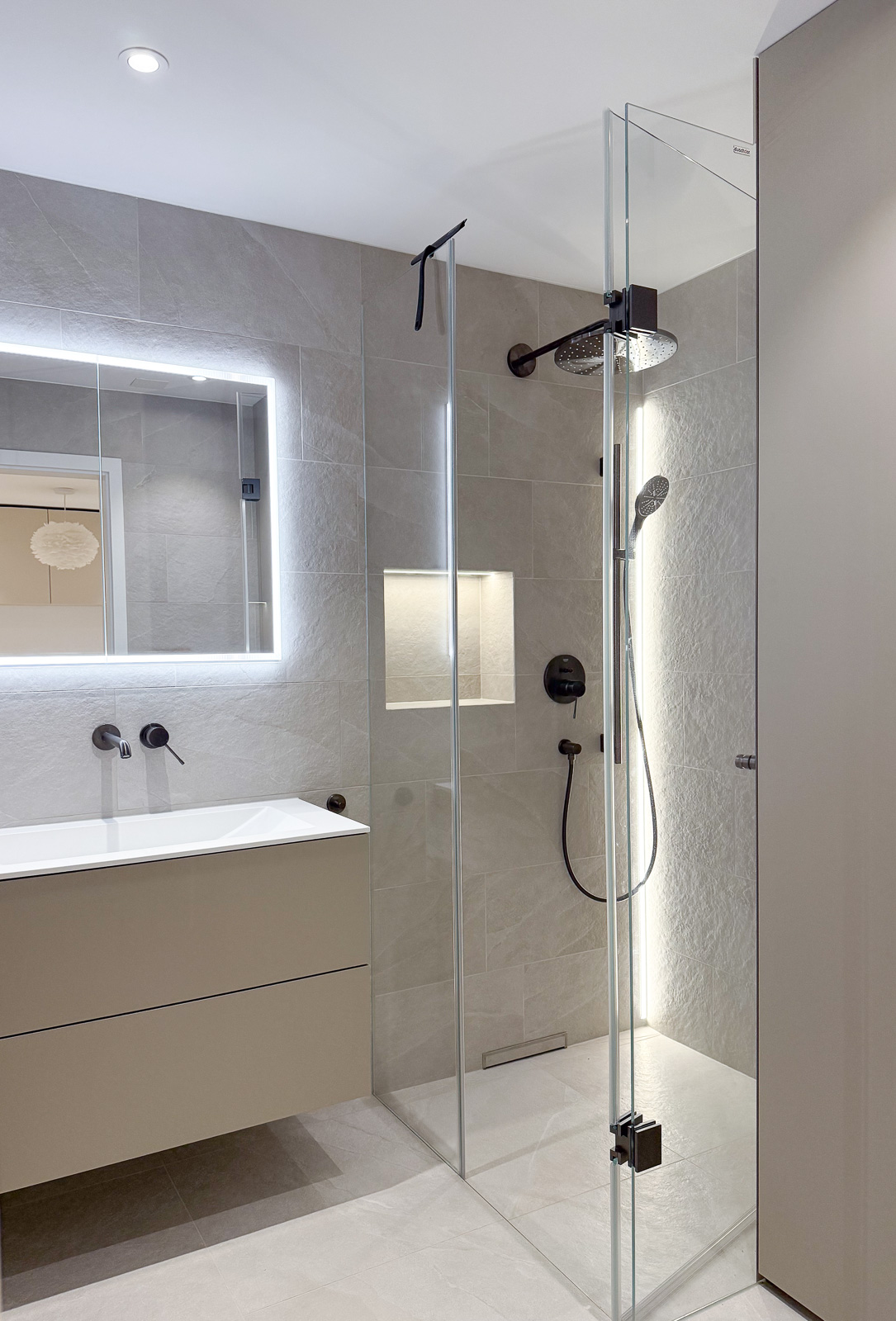 Aus einem einfachen Hobbyraum wurde in diesem Projekt eine vollwertige, luxuriös ausgestattete Einliegerwohnung mit Küche und zwei Nasszellen geschaffen.