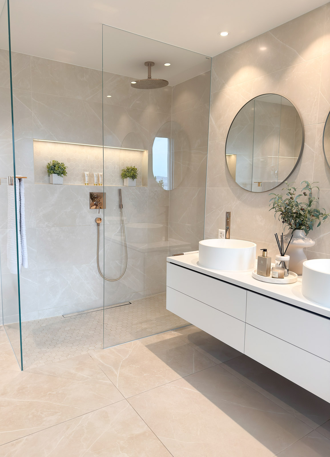 Bereits in der frühen Bauphase begleiteten wir das Projekt mit einem klaren Fokus auf Raumwirkung, Materialität und Funktionalität. Grosszügige Grundrisse, klare Linien und bewusst eingesetzte Blickachsen unterstreichen die Weite der Attika-Wohnung und lassen das natürliche Licht optimal zur Geltung kommen.