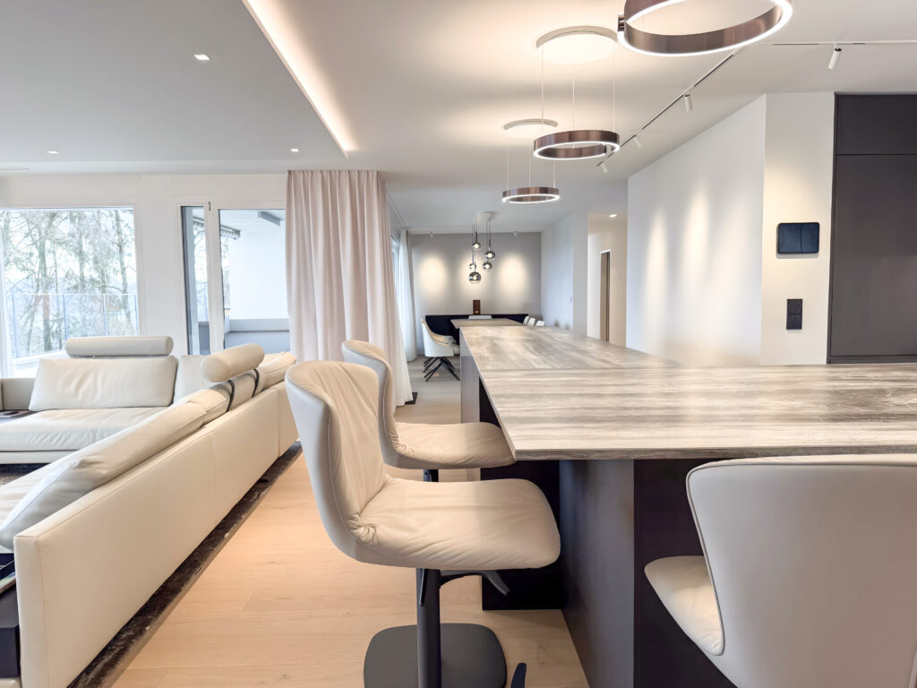 All bathrooms were newly designed and fitted with premium fixtures, offering not only maximum functionality but also an atmosphere of luxurious comfort. Through targeted floor plan optimization, the living space was used more efficiently, creating a more spacious overall feel.